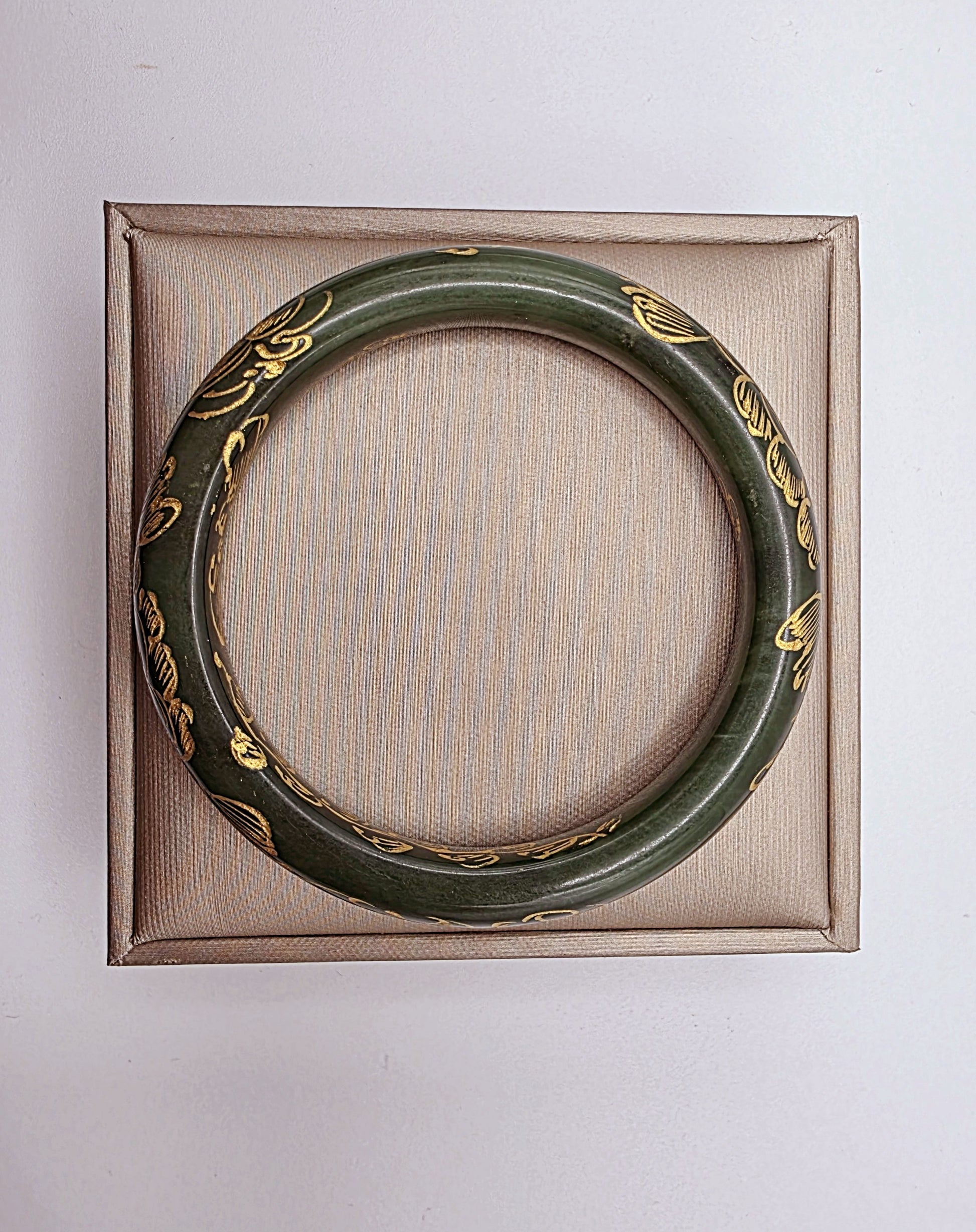 Hetian Jade Bangle with 999k Gold Carving Handcrafted - Luxury - Certifie