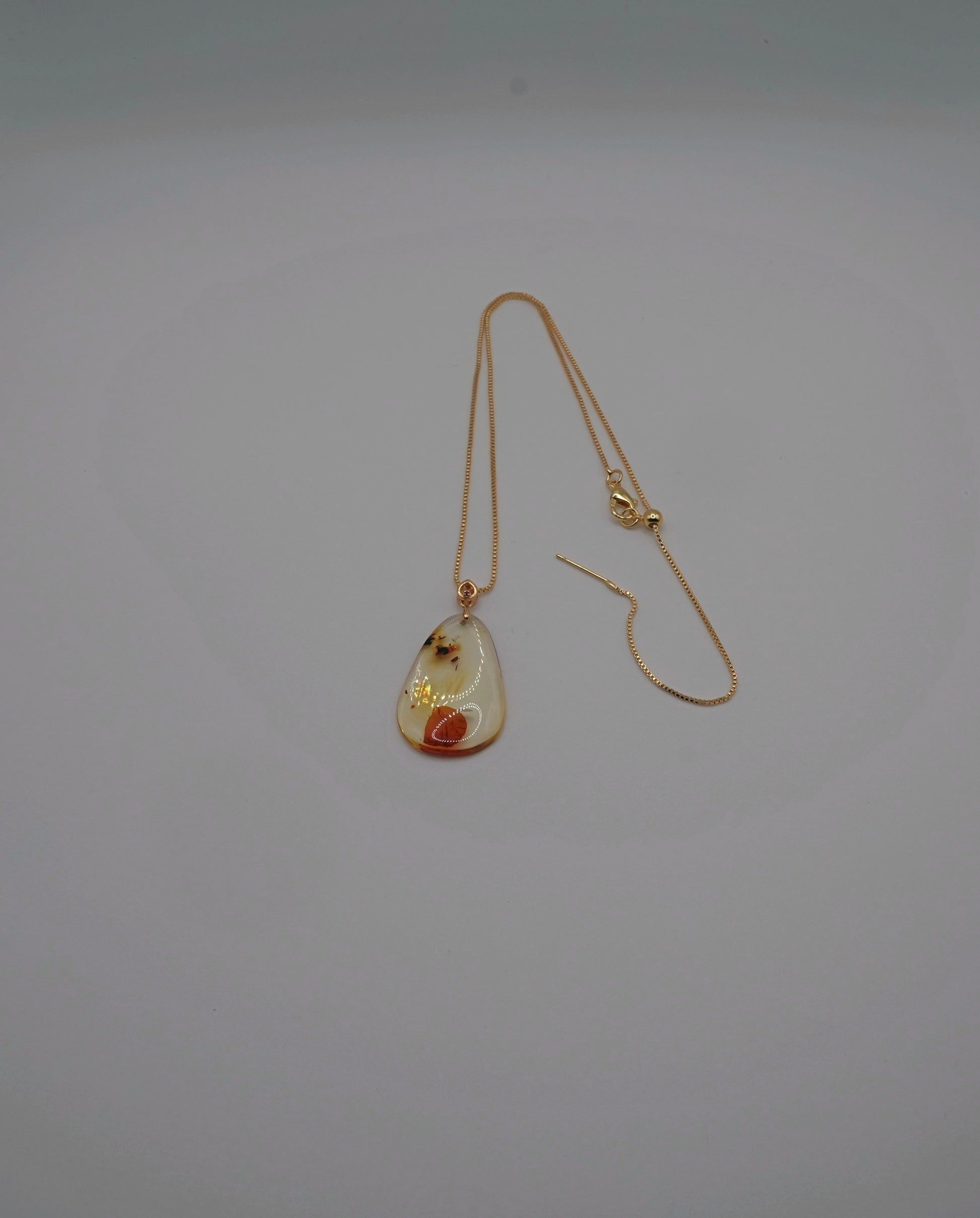 Natural Flower Amber Pendant - Botanical Resin Jewelry Organic Elegance