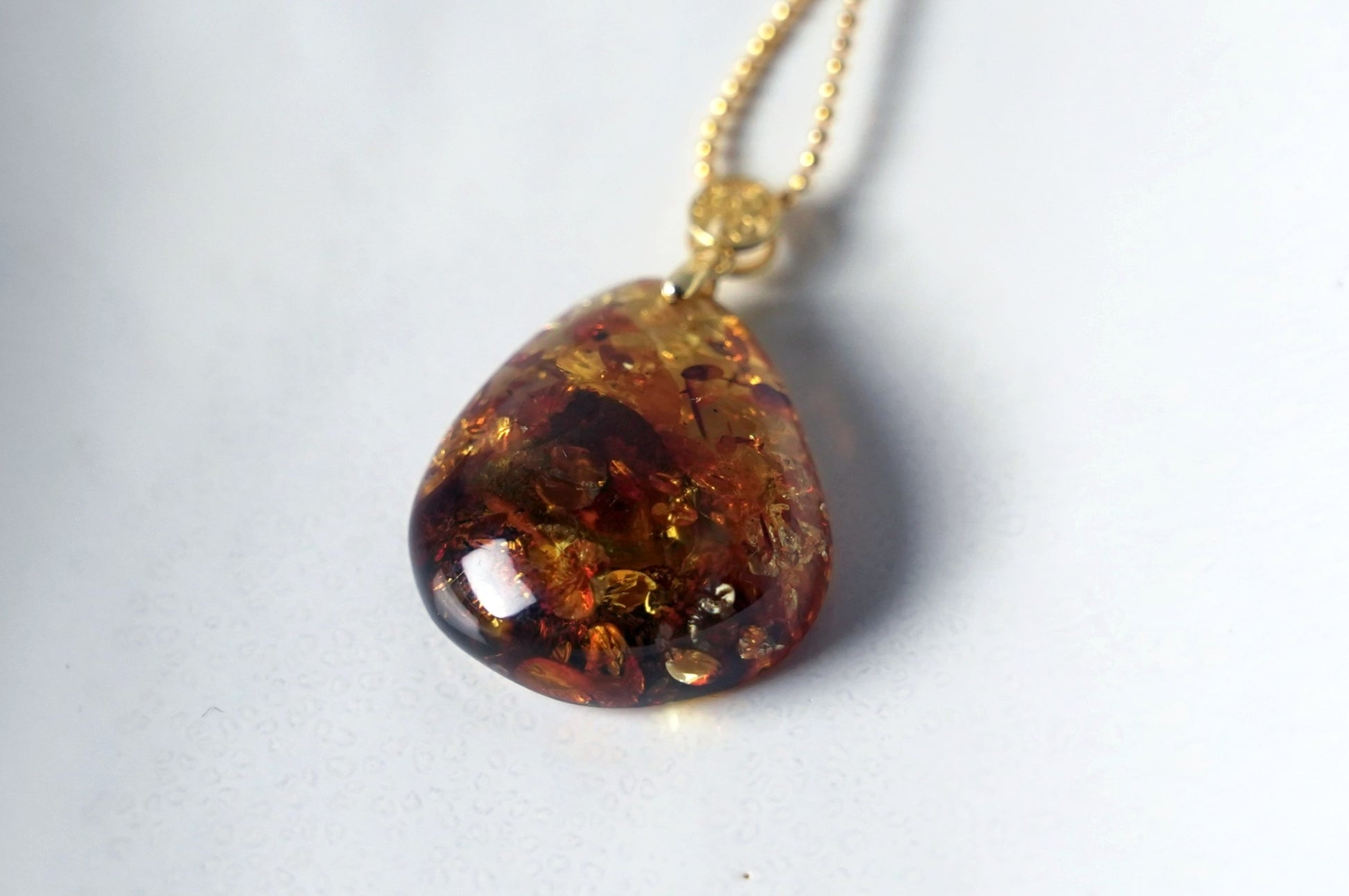 Burmese Amber Pendant – Natural Golden Resin Gemstone