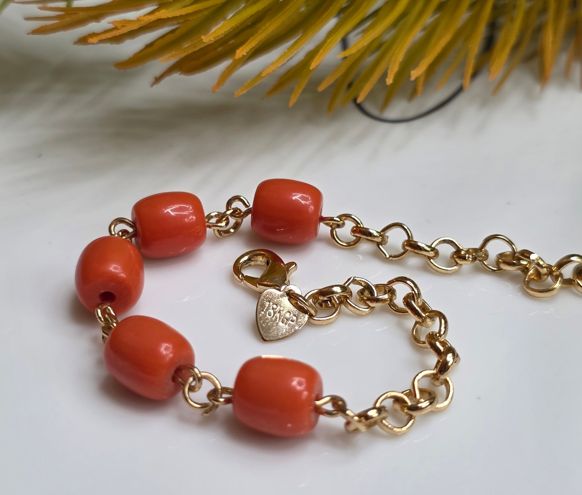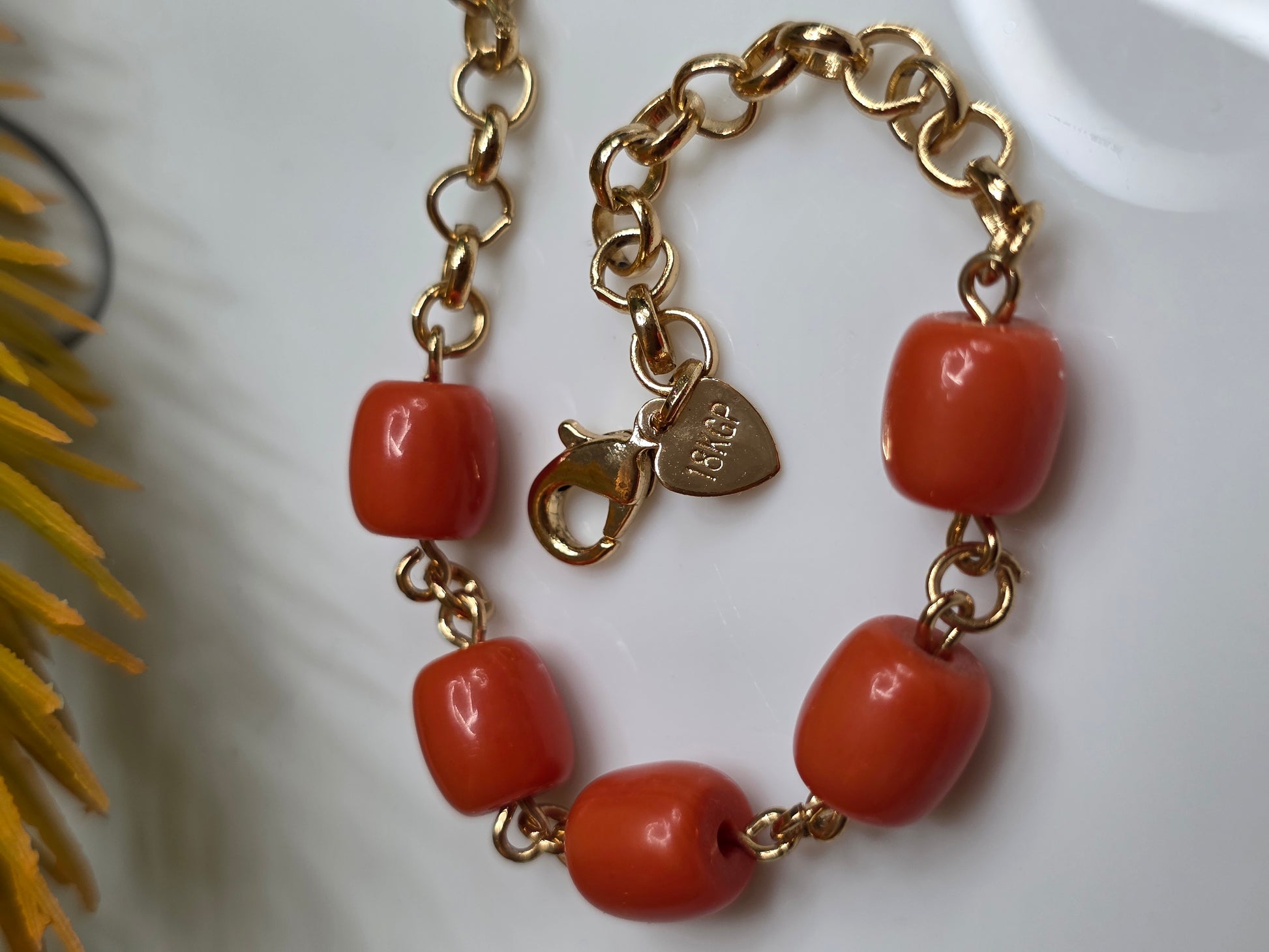 18K Gold-Plated Coral Bracelet – Vintage Warmth, Modern Sophistication