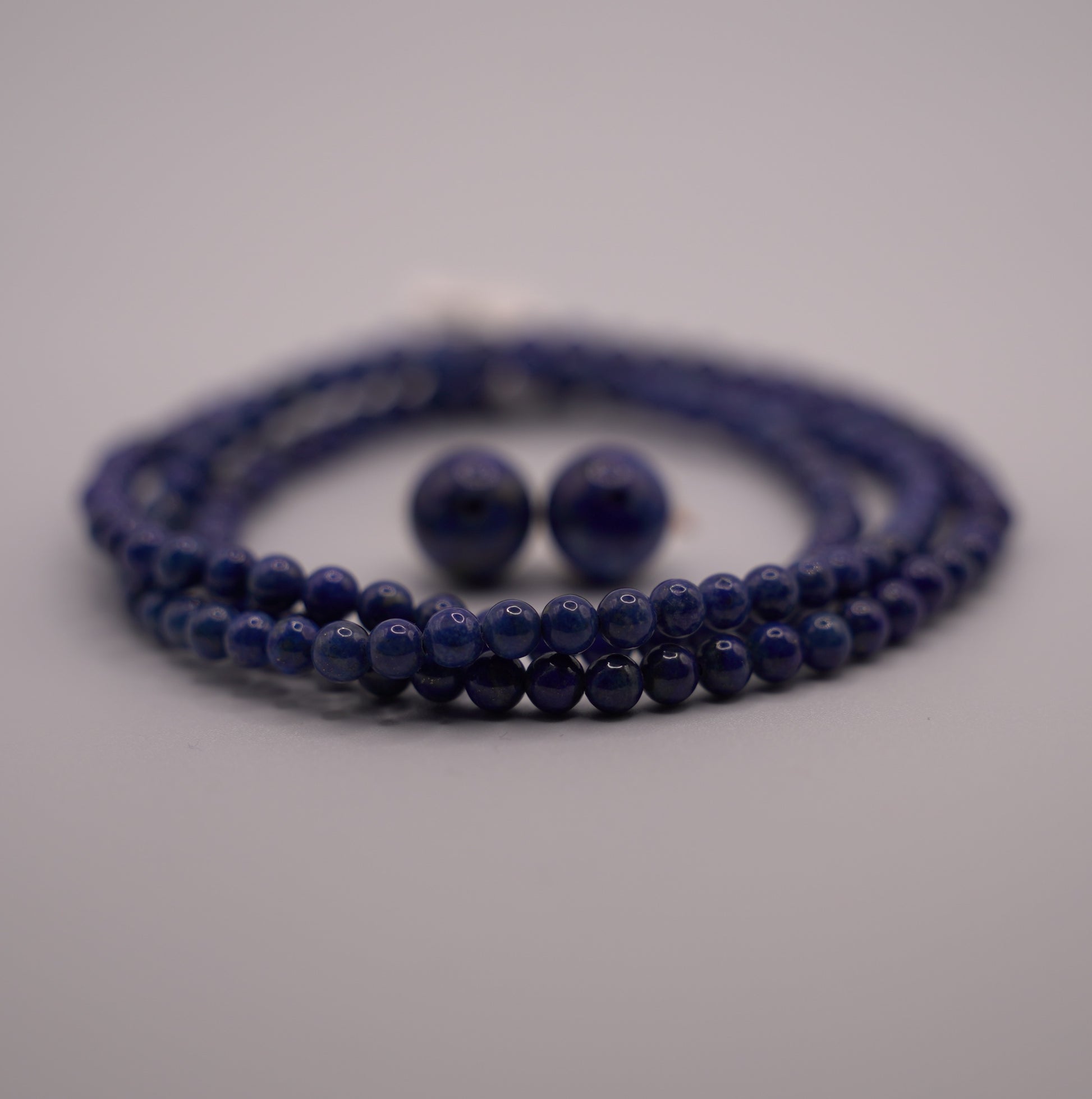 Lapis Lazuli is a stone of wisdom, truth, and spiritual insight. Aligned with the third eye and throat chakras, it is believed to enhance mental clarity, deepen intuition, and support authentic self-expression. Worn together, the necklace and earrings form a harmonious field of energetic resonance—inviting the wearer to speak with confidence, think with clarity, and connect with higher guidance.