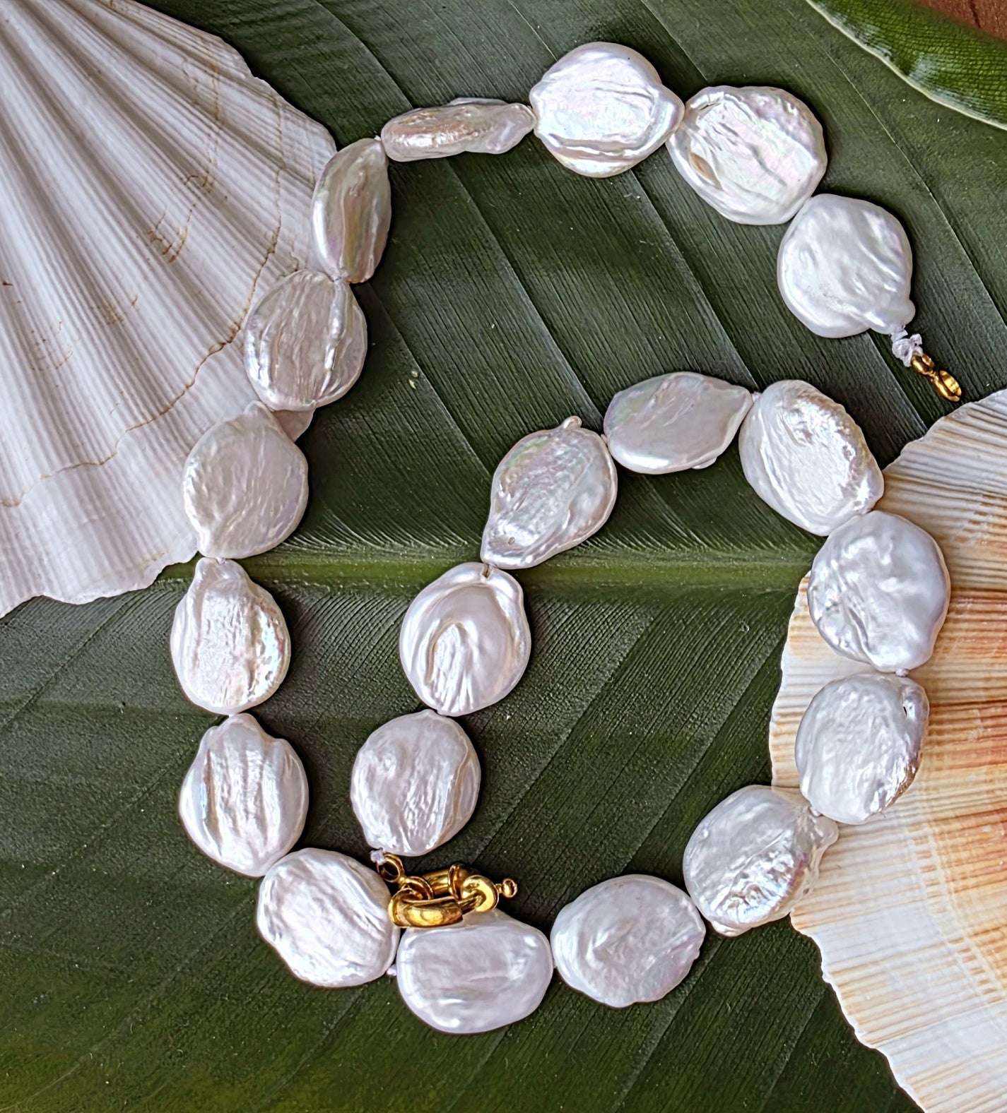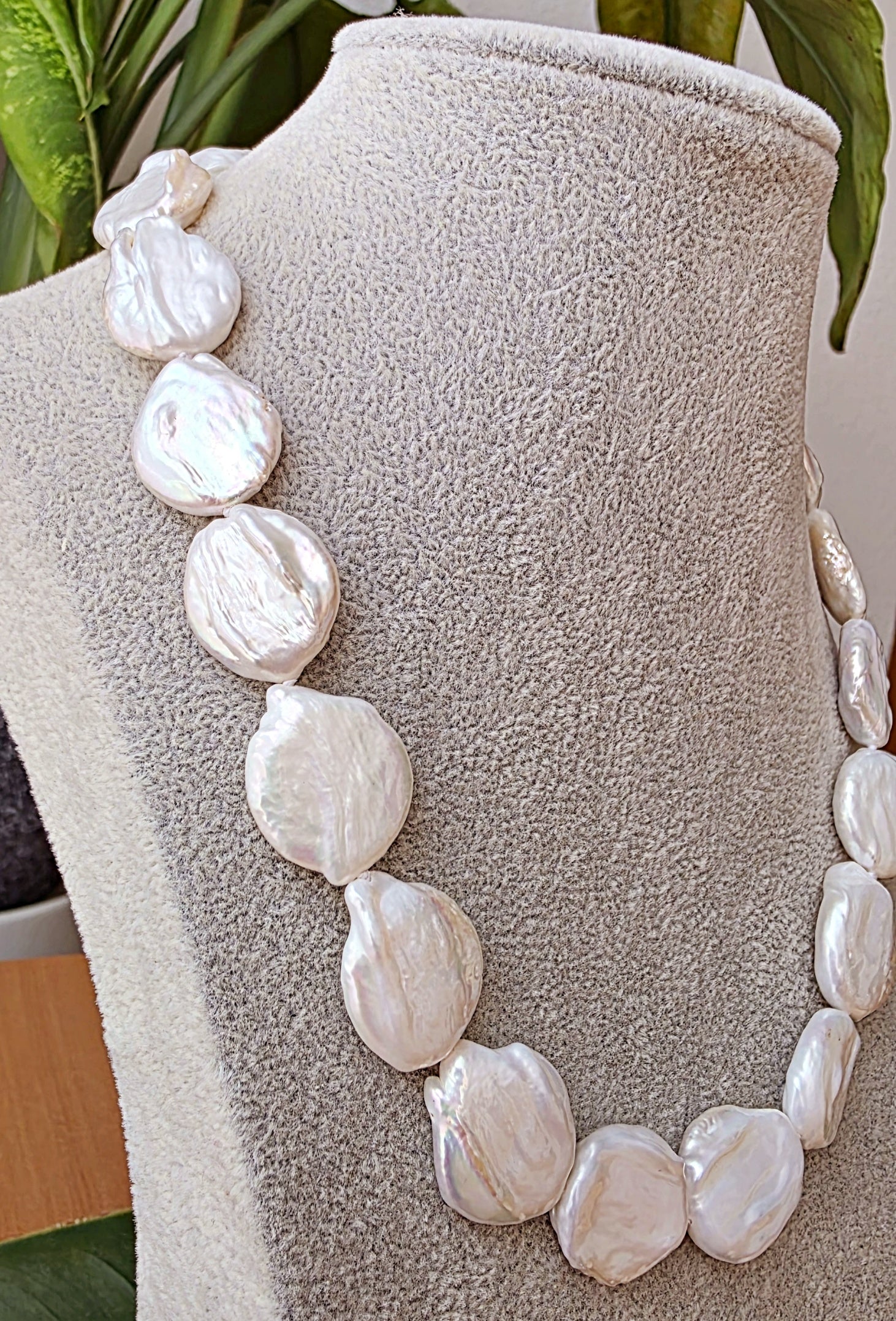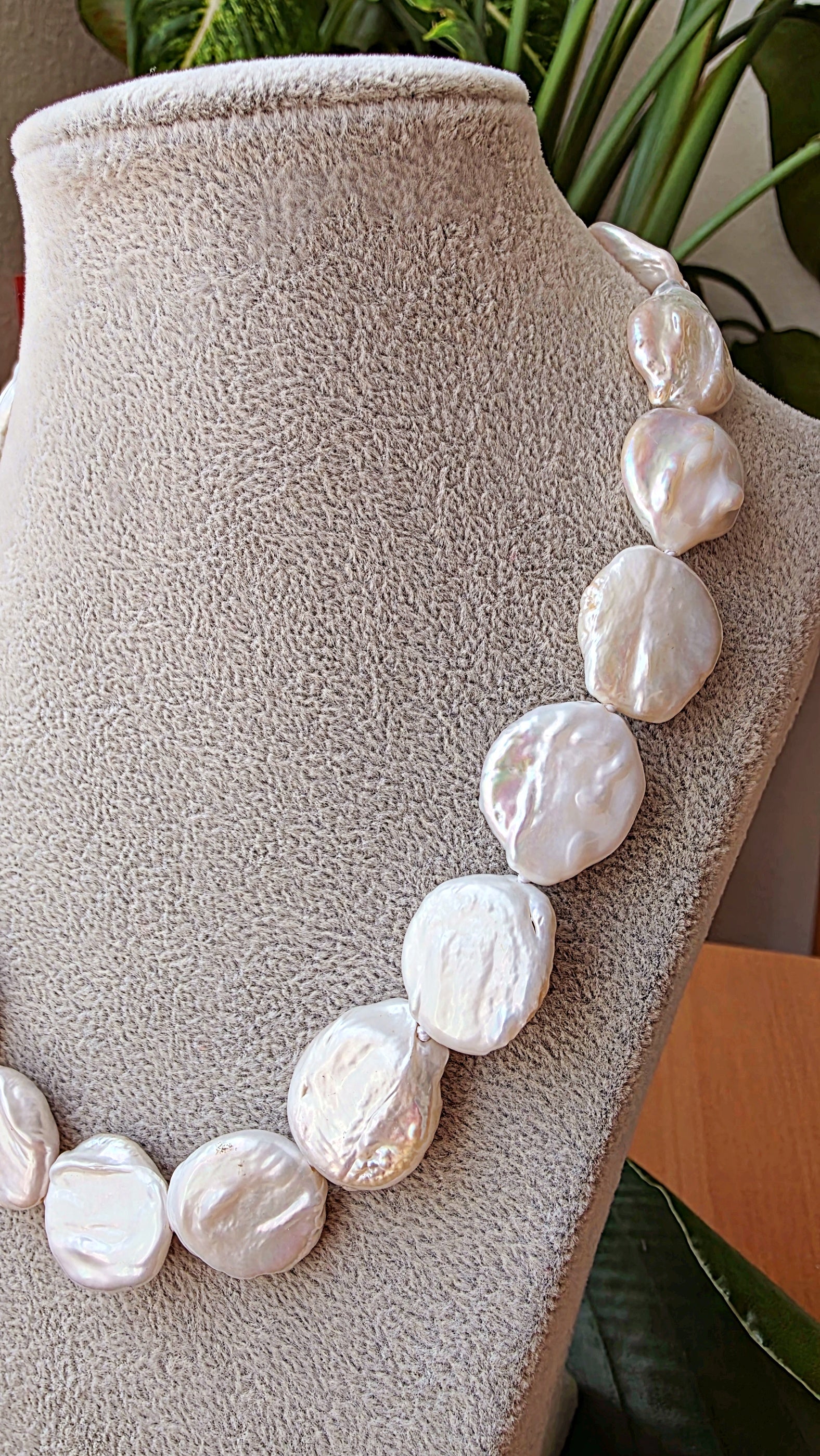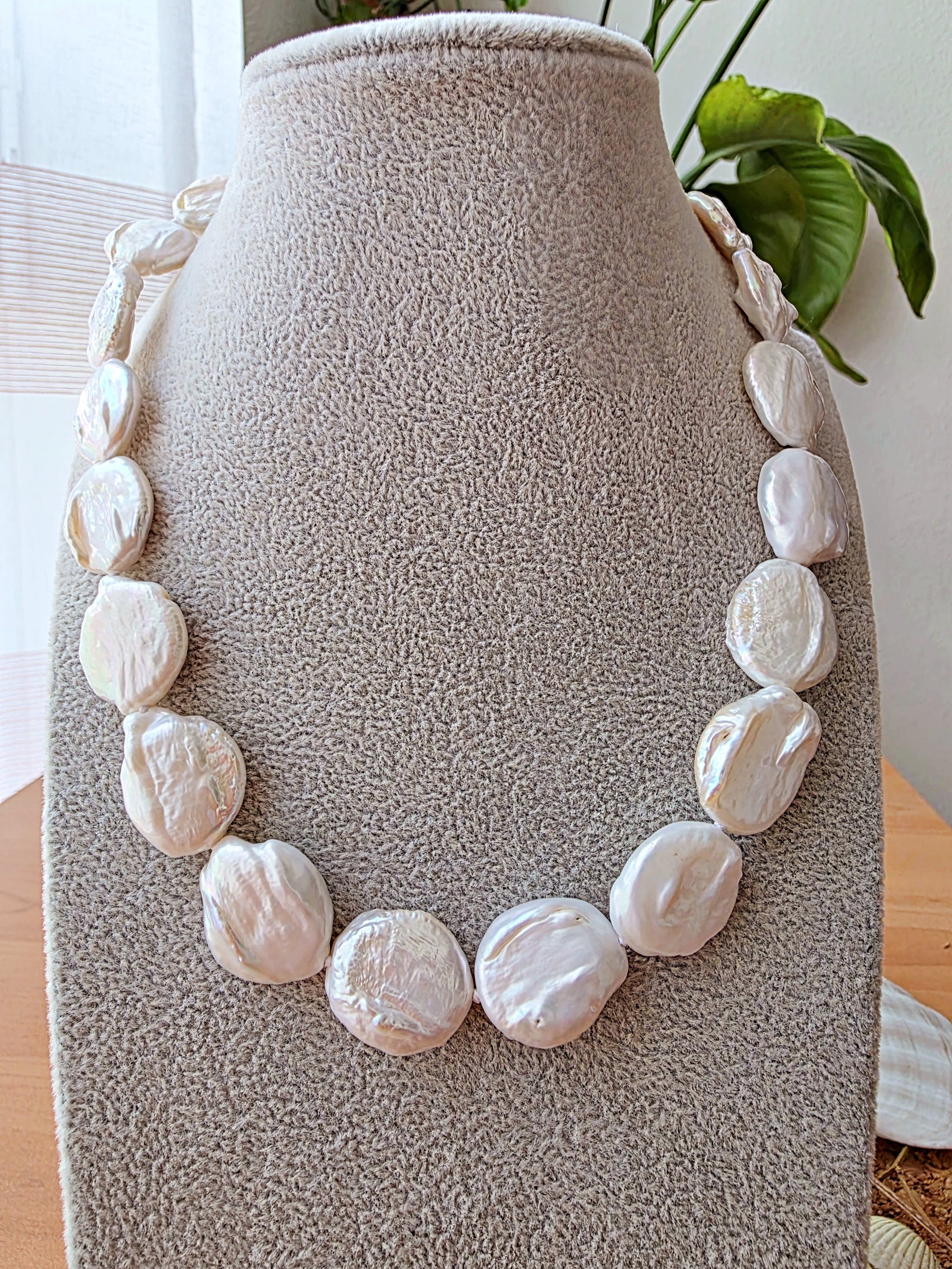This exquisite necklace features a full strand of natural Keshi pearls, celebrated for their irregular shapes, pure nacre composition, and exceptional iridescence. Each pearl is formed without a nucleus, resulting in a lightweight yet luminous surface that reflects light with remarkable depth. The organic forms and high luster make this piece a rare and luxurious statement of natural beauty.