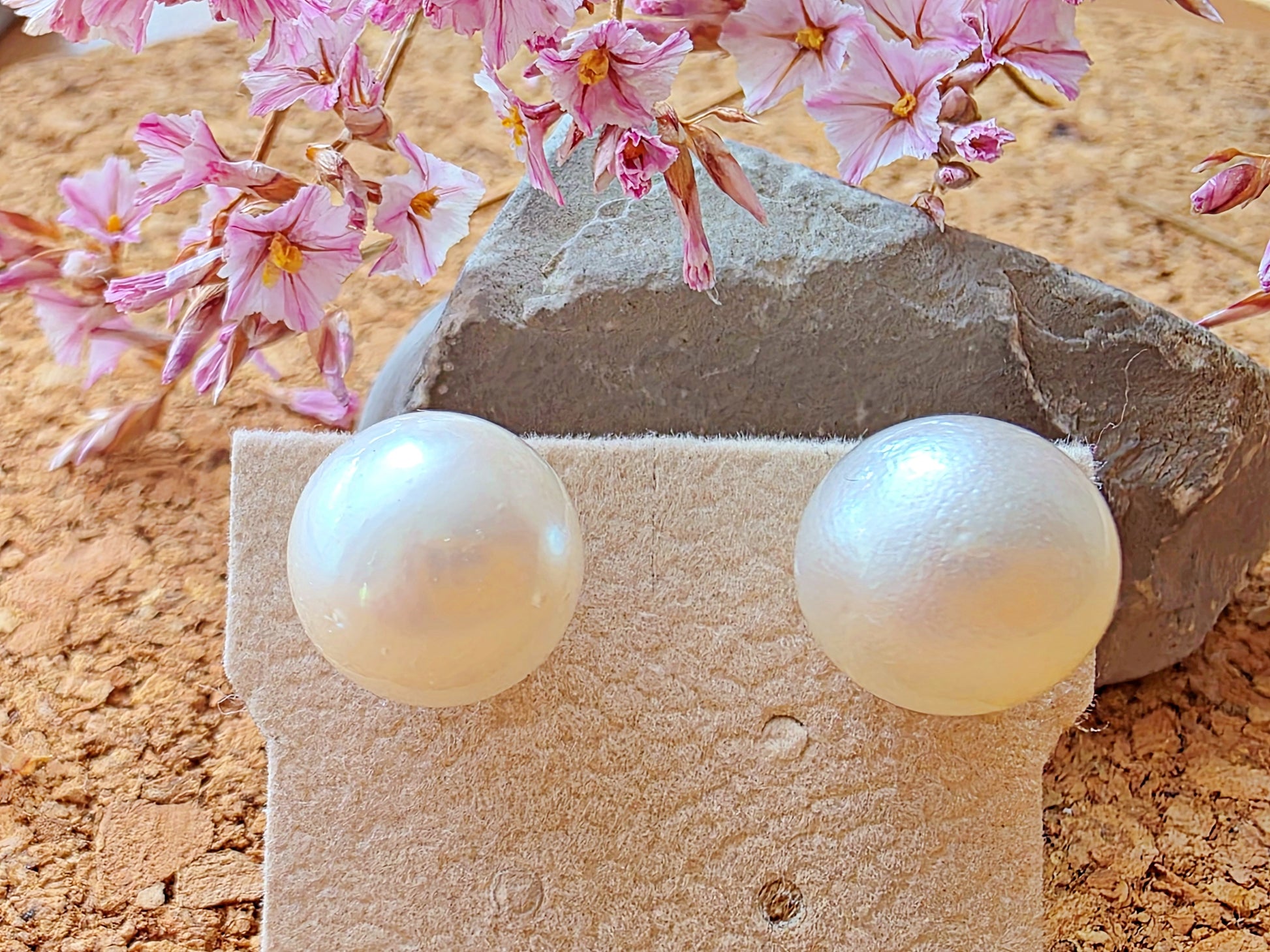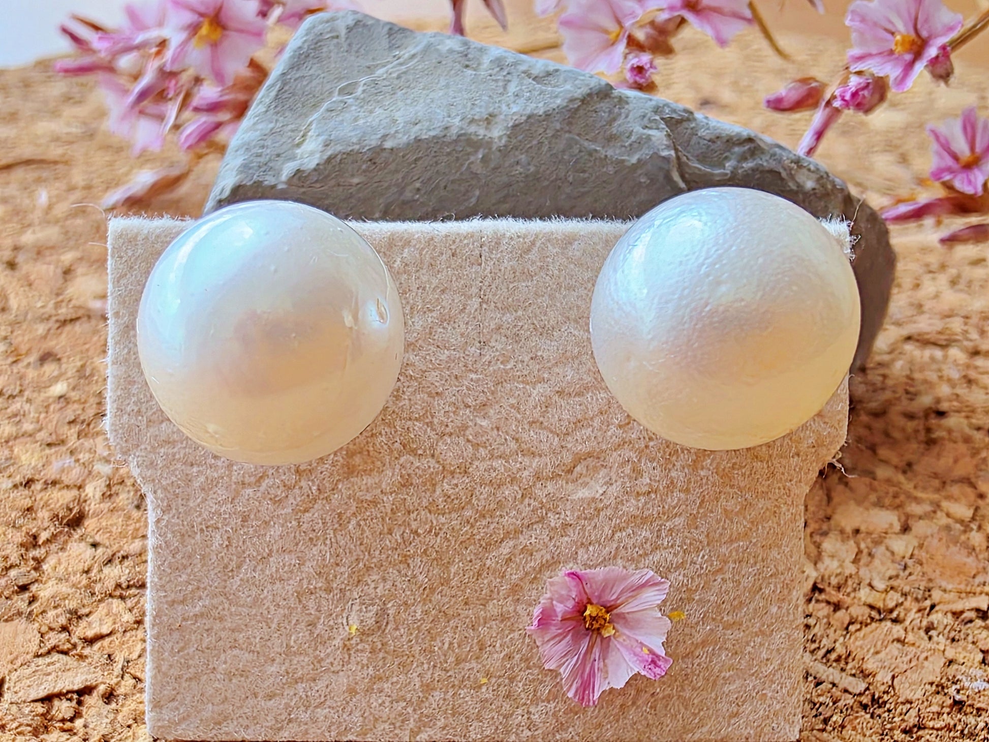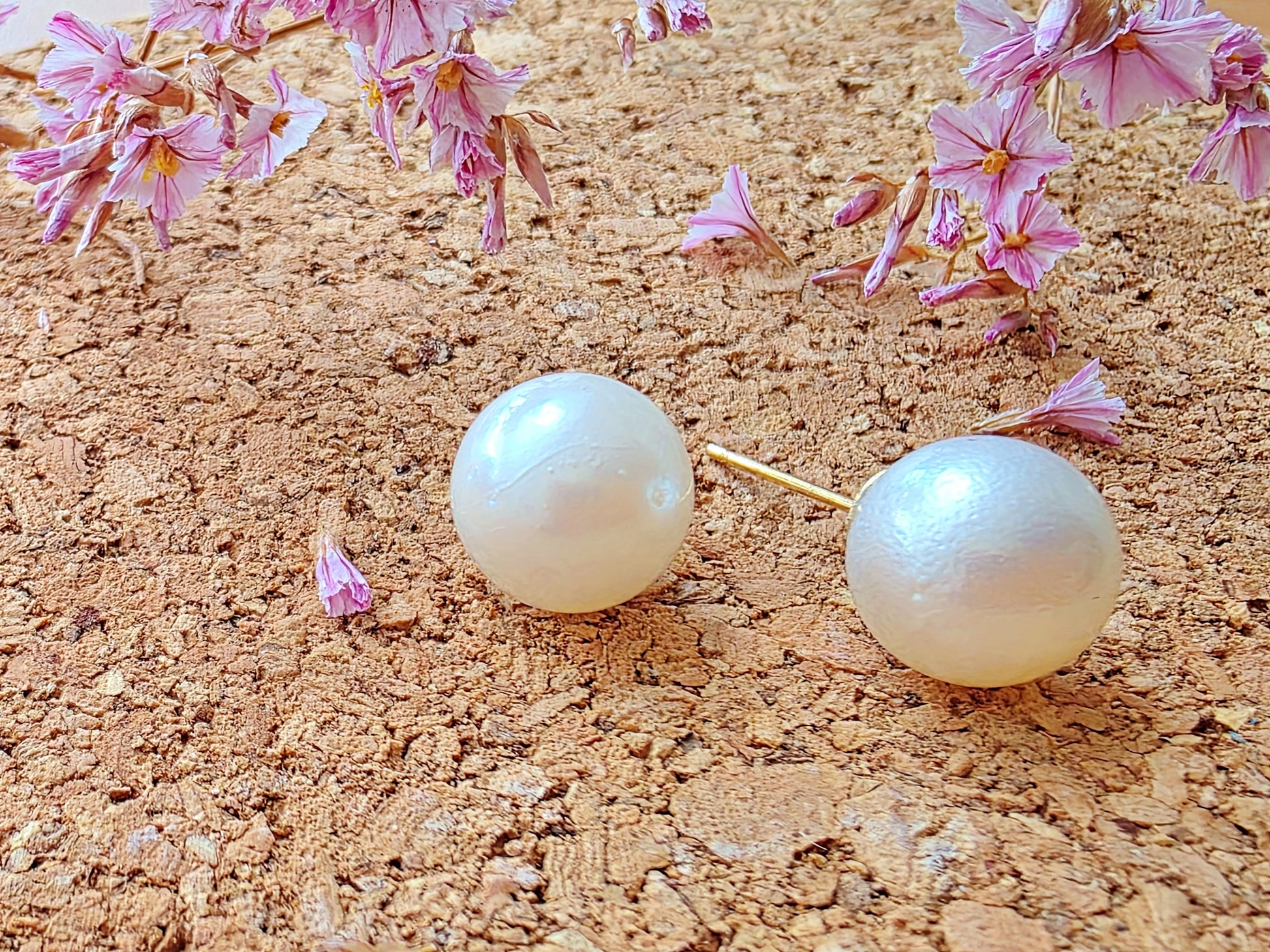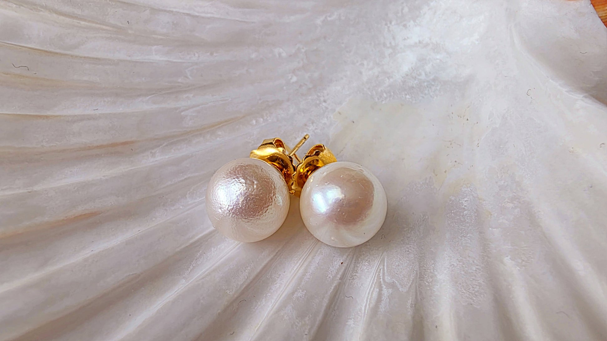 This elegant pair of stud earrings features genuine South Sea pearls, celebrated for their exceptional size, silky luster, and timeless appeal. Set in classic gold posts, each pearl displays a soft iridescence and smooth nacre surface. A subtle surface imperfection—visible upon close inspection—serves as a hallmark of authenticity, confirming the pearls are natural and untreated, formed organically in the warm waters of the South Pacific.